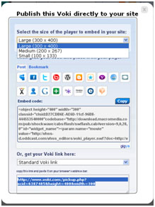 - Click the drop down menu and select Large. Then select, Standard Voki link to get the URL.