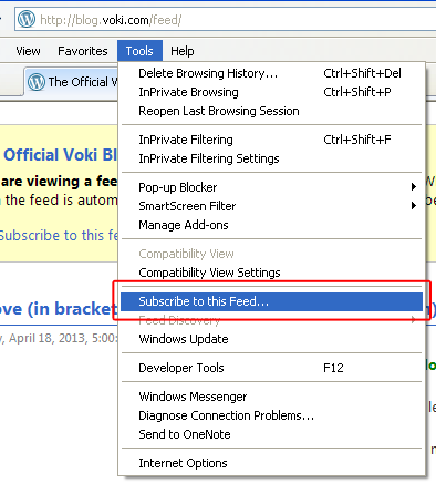 9. The RSS feed for the Voki blog will appear under your address bar.