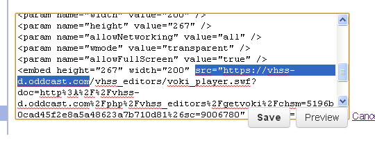 7. Paste your Voki’s embed code into the box.