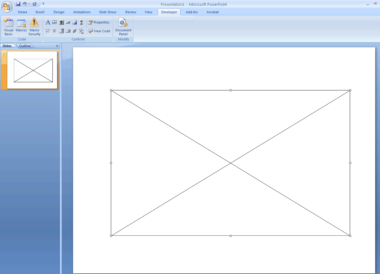 - You will see a + sign as your mouse cursor. Click and drag on a blank PowerPoint slide. This will create a big box with an X in the middle.