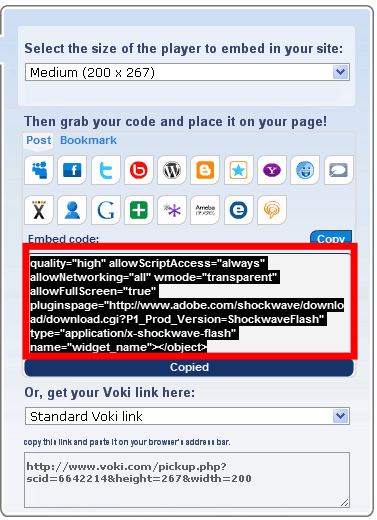 Note: To play your Voki using the embed code you must be connected to the internet.
